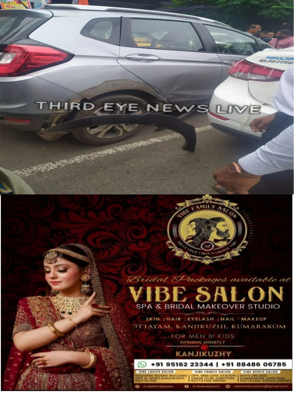 അപകടത്തിൽ ആർക്കും പരിക്കില്ല. രണ്ടു കാറുകളും ഭാഗികമായി തകർന്നു.
