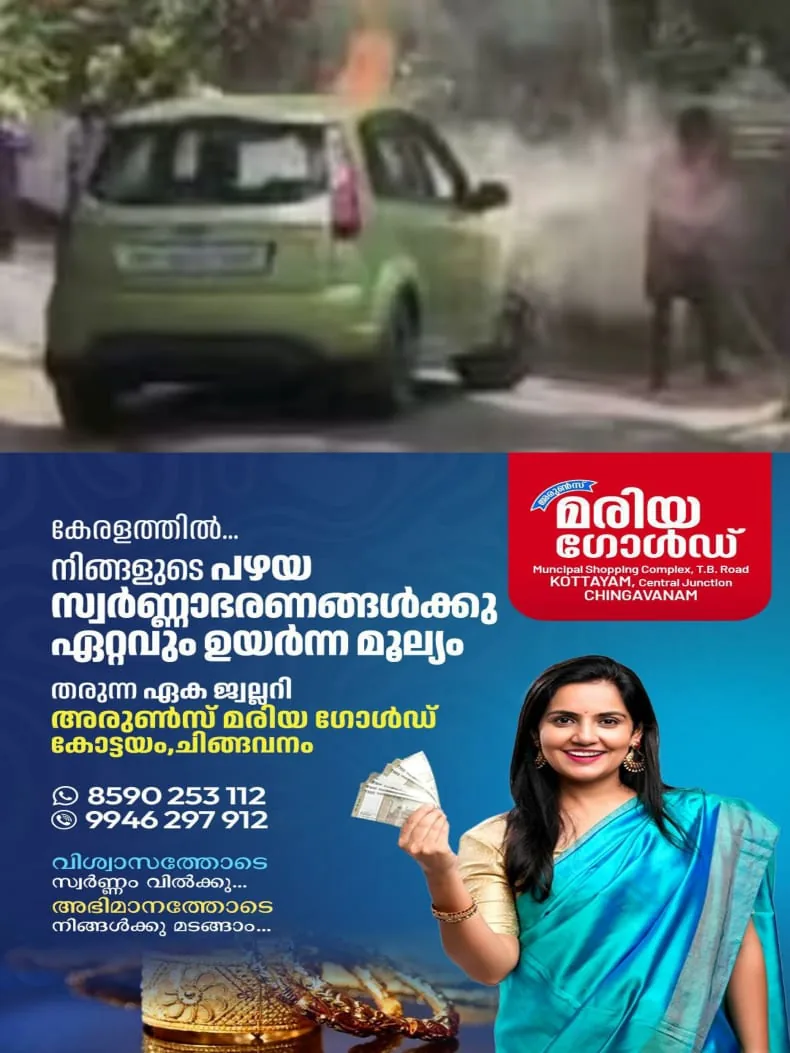 ഓടി കൊണ്ടിരുന്ന കാറിനു തീ പിടിച്ചു ; ഡ്രൈവർ രക്ഷപ്പെട്ടത് തലനാരിഴയ്ക്ക്