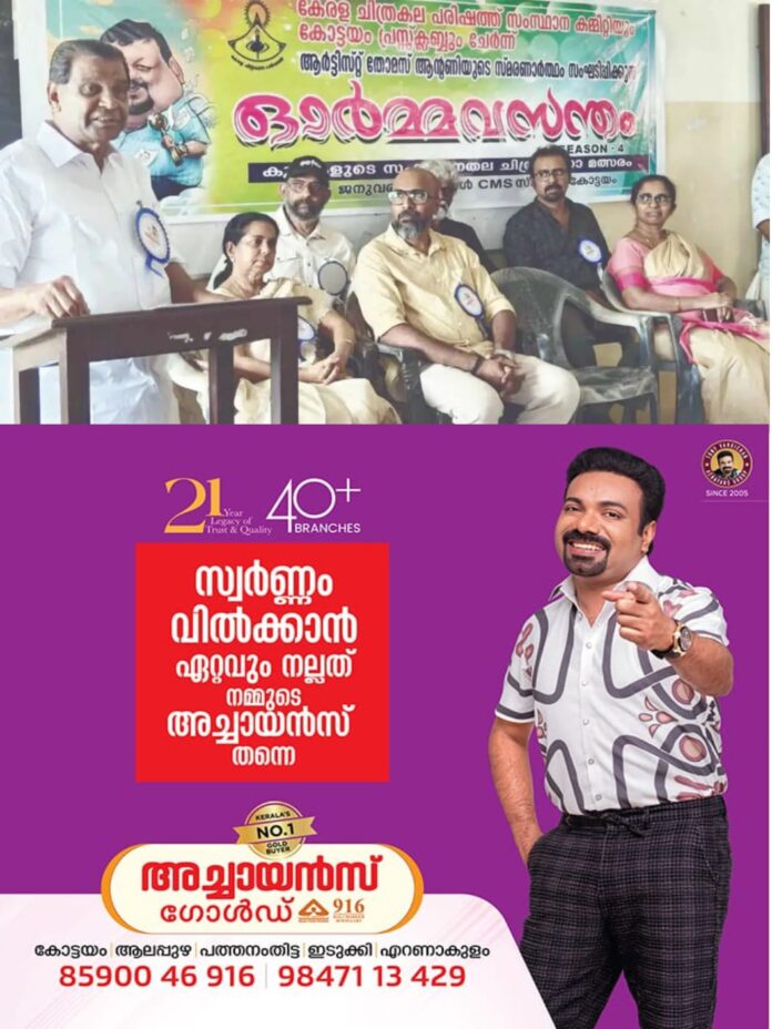 കോട്ടയം: കാര്ട്ടൂണിസ്റ്റ് തോമസ് ആന്റണിയുടെ സ്മരണാര്ഥം കേരള ചിത്രകലാ പരിഷത്ത് സംസ്ഥാന കമ്മിറ്റിയും കോട്ടയം പ്രസ് ക്ലബ്ബും സംയുക്തമായി സംഘടിപ്പിച്ച ഓര്മവസന്തം സീസണ് 4 സംസ്ഥാനതല കുട്ടികളുടെ ചിത്രരചന-കാര്ട്ടൂണ് മത്സരം നടന്നു.
