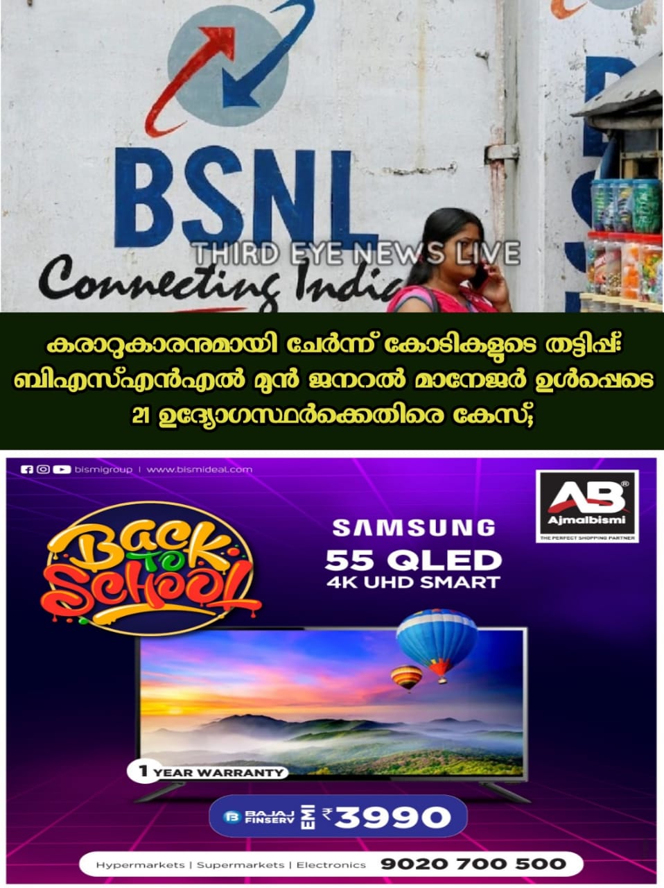 ഡൽഹി: കരാറുകാരനുമായി ചേർന്ന് കോടികളുടെ തട്ടിപ്പു നടത്തി. ബിഎസ്എൻഎൽ മുൻ ജനറൽ മാനേജർ ഉൾപ്പെടെ 21 ഉദ്യോഗസ്ഥർക്കെതിരെ കേസ്.