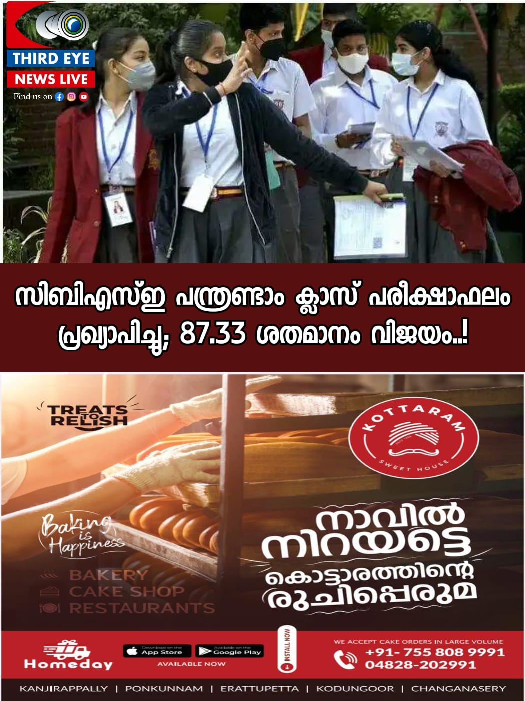 തിരുവനന്തപുരം മേഖല മികച്ച നേട്ടമാണ് കൈവരിച്ചത്. 99. 91 ശതമാനമാണ് വിജയം.results.cbse.nic.in , cbse.gov.in എന്നി ഔദ്യോഗിക വെബ്സൈറ്റുകള് വഴി ഫലം അറിയാം.
