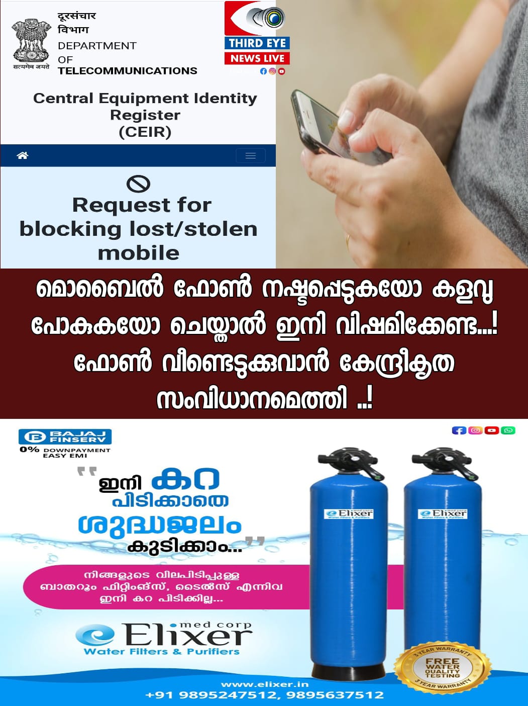 നഷ്ട്ടപ്പെട്ടതോ കളവു പോയതോ ആയ മൊബൈൽ ഫോൺ വീണ്ടെടുക്കുവാൻ ആയി ഒരു കേന്ദ്രീകൃത സംവിധാനം പ്രാബല്യത്തിൽ.