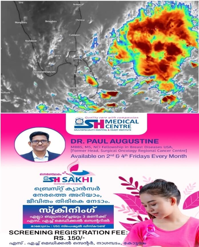 ഭൂമധ്യരേഖ പ്രദേശത്തുള്ള ഇന്ത്യൻ മഹാസമുദ്രത്തിനും അതിനോട് ചേർന്നുള്ള തെക്ക് പടിഞ്ഞാറൻ ബംഗാള് ഉള്ക്കടലിനും മുകളിലായി സ്ഥിതിചെയ്തിരുന്ന ന്യൂനമർദ്ദം ശക്തി കുറഞ്ഞു. ഇത് 24 മണിക്കൂറിനുള്ളില് പടിഞ്ഞാറ്-വടക്ക് പടിഞ്ഞാറ് ദിശയിലേക്ക് നീങ്ങി ശ്രീലങ്ക ഭാഗത്തേക്ക് സഞ്ചരിക്കാൻ സാധ്യതയുണ്ടെന്നും കാലാവസ്ഥാ വകുപ്പ് അറിയിച്ചു.