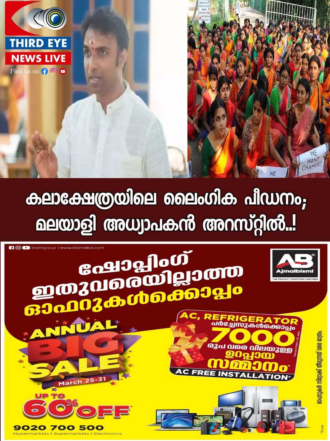 ചെന്നൈ: കലാക്ഷേത്ര ഫൗണ്ടേഷനിലെ രുക്മിണി ദേവി കോളേജ് ഓഫ് ഫൈൻ ആർട്സിലെ വിദ്യാർത്ഥിനിയെ ലൈംഗികമായി പീഡിപ്പിച്ചെന്ന പരാതിയിൽ മലയാളി അധ്യാപകൻ അറസ്റ്റിൽ. കോളേജിലെ അസിസ്റ്റന്റ് പ്രൊഫസർ ഹരി പത്മനാണ് അറസ്റ്റിലായത്.
