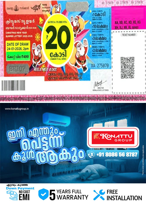 പിറവം: 20 കോടിയുടെ ക്രിസ്മസ് പുതുവത്സര ബമ്പർ അടിച്ച