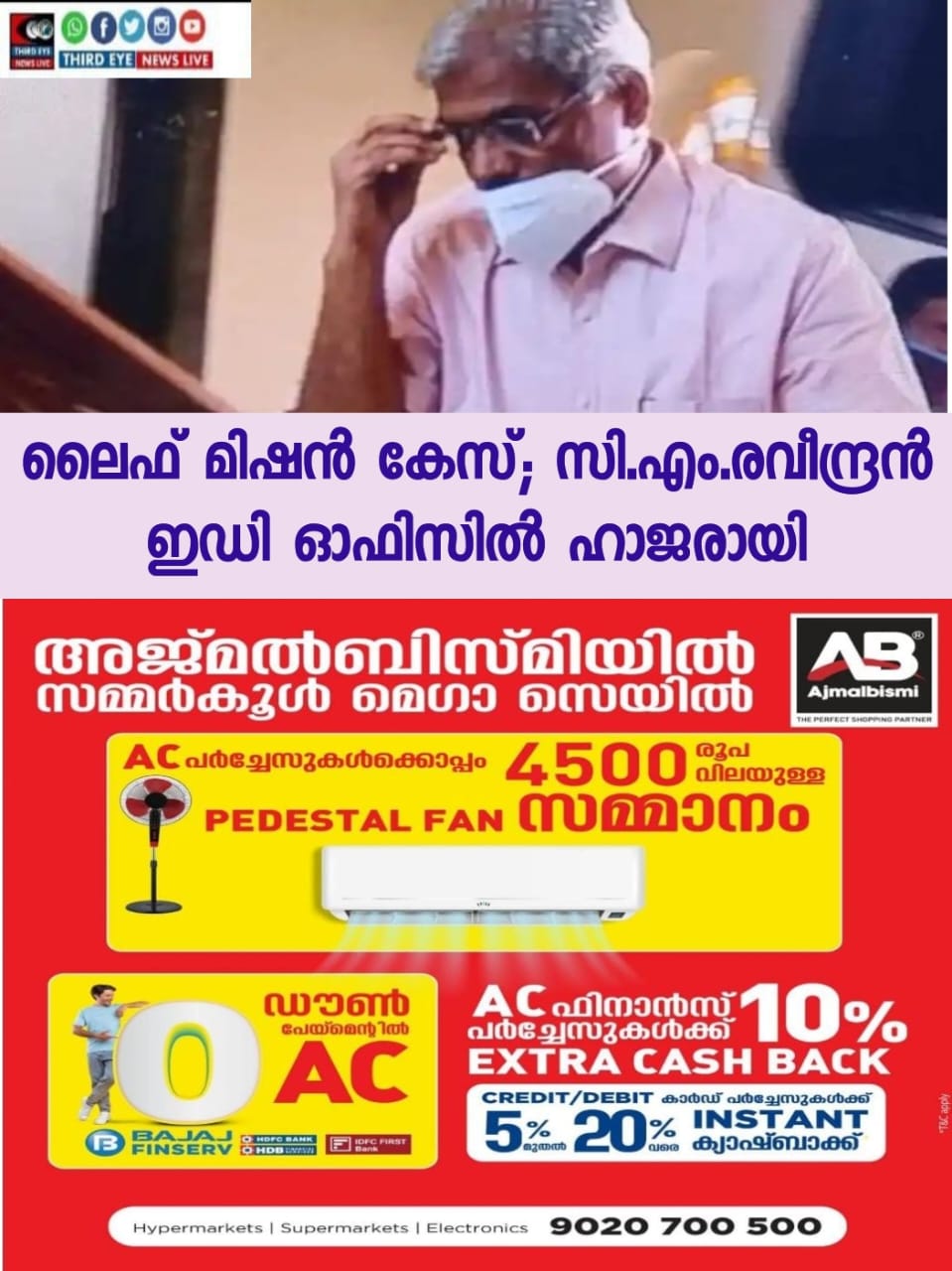 കൊച്ചി:മുഖ്യമന്ത്രിയുടെ അഡീഷണൽ പ്രൈവറ്റ് സെക്രട്ടറി സി.എം. രവീന്ദ്രൻ ലൈഫ് മിഷൻ കേസുമായി ബന്ധപ്പെട്ട ചോദ്യം ചെയ്യലിനായി എൻഫോഴ്സ്മെന്റ് ഡയറക്ടറേറ്റ് (ഇ.ഡി)ഓഫീസിലെത്തി.