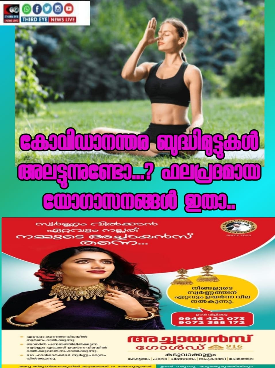 കോവിഡിനുശേഷം ബുദ്ധിമുട്ടുകള് അനുഭവിക്കുന്നവര്ക്കിതാ ഫലപ്രദമായ ഏതാനും യോഗാസനങ്ങള് ഇതാ. യോഗ ജീവിതത്തിന്റെ ഭാഗമാക്കുമ്പോള് മനസ്സും ശരീരവും അതിനായി പാകപ്പെടുത്തേണ്ടതുണ്ട്. അത് ഒരുദിവസംകൊണ്ട് ഒരിക്കലും സാധിക്കുന്നതല്ല. സാവധാനം ശരീരവും മനസ്സും അതിന്റെ താളത്തിലേക്ക് മാറ്റിയെടുക്കാം.