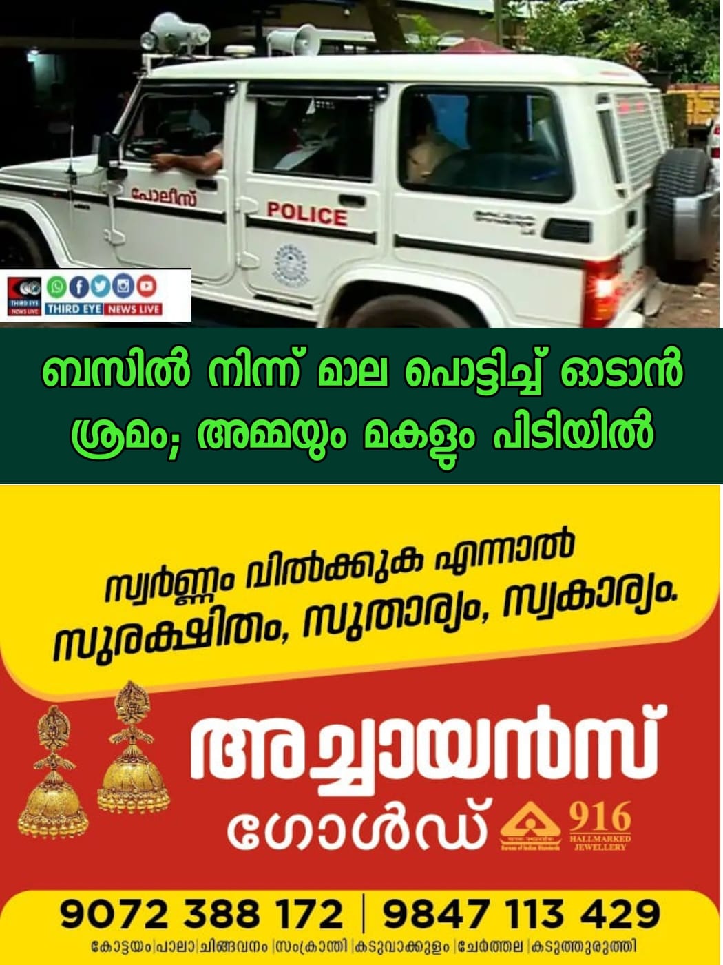 ബസില്‍ വെച്ച് മാല പൊട്ടിച്ചു; പിടിക്കപ്പെടുമെന്നായപ്പോൾ ഓടി രക്ഷപെടാൻ ശ്രമം; തൊടുപുഴയില്‍ അമ്മയും മകളും പിടിയില്‍