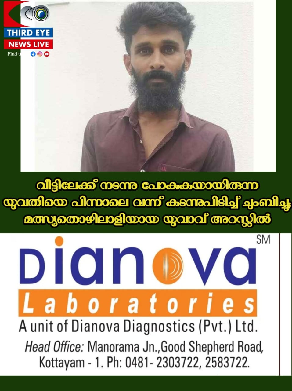 ചന്തേര: വീട്ടിലേക്ക് നടന്നു പോകുകയായിരുന്ന യുവതിയെ പിന്നാലെ വന്ന് കടന്നുപിടിച്ച് ചുംബിച്ച മത്സ്യതൊഴിലാളിയായ യുവാവ് അറസ്റ്റില്. മലപ്പുറം പള്ളിക്കുന്ന് കടലുണ്ടി നഗരം സ്വദേശി കെ.പി ഹൗസില് അര്ഷാദിനെ(23)യാണ് അറസ്റ്റിലായത്.