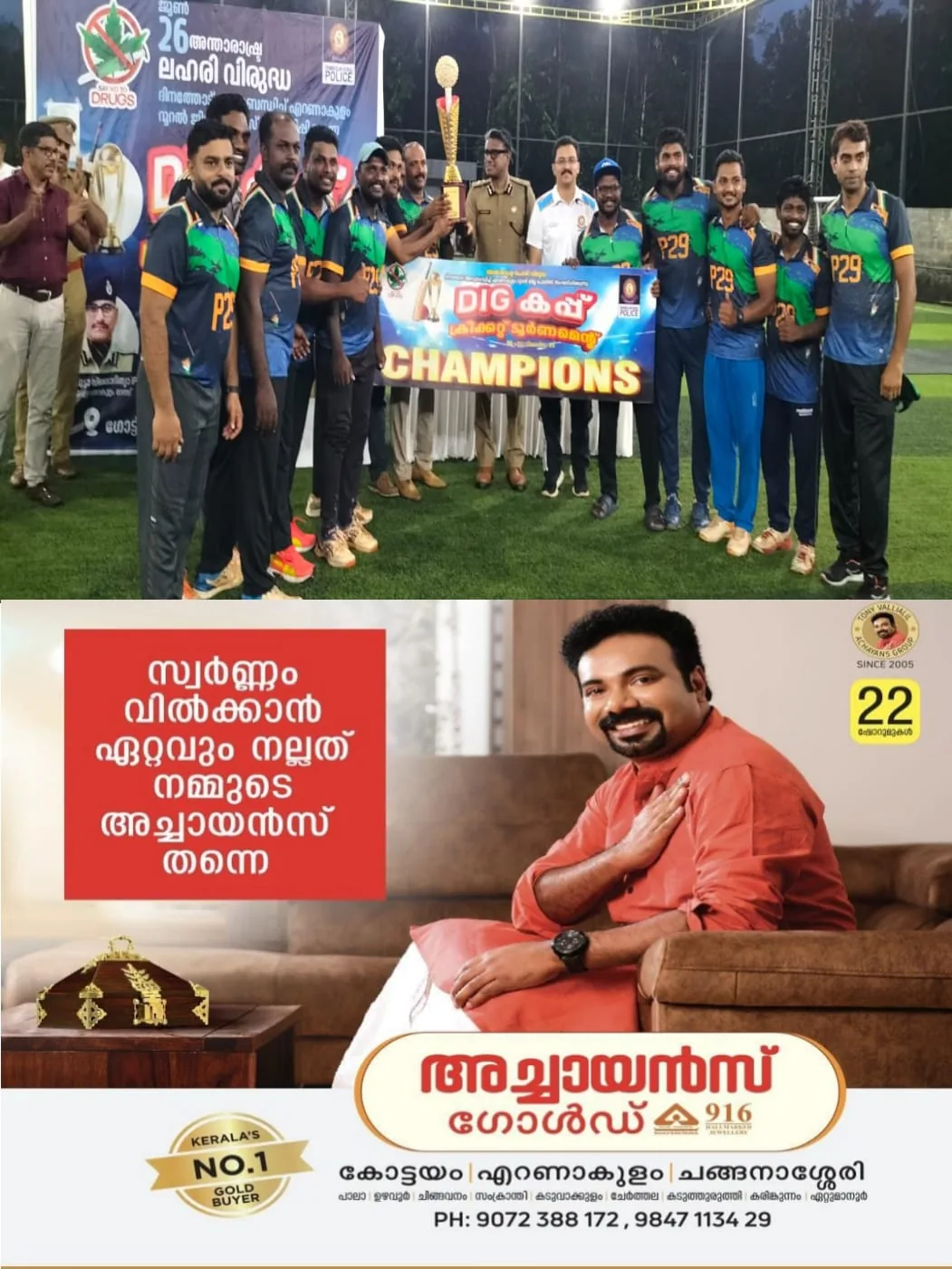 ട്വന്റി ട്വന്റി മാതൃകയിലുള്ള ഡിഐജി കപ്പ് ക്രിക്കറ്റ് കാർണിവെലിൽ പുത്തൻകുരിശ് ഡിവൈഎസ്പി വി എ നിഷാദ് മോൻ്റെ നേതൃത്വത്തിലുള്ള പുത്തൻ കുരിശ് സബ് ഡിവിഷൻ ജേതാക്കളായി. രണ്ടാം സ്ഥാനത്തിന് പെരുമ്പാവൂർ സബ് ഡിവിഷനും ലഭിച്ചു. വിജയികൾക്ക് സിറ്റി പൊലീസ് കമ്മീഷണർ ശ്യാം സുന്ദർ ട്രോഫികൾ വിതരണം ചെയ്തു.