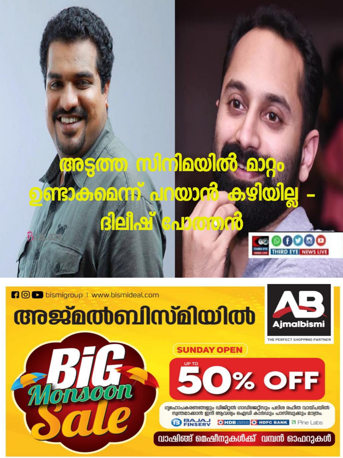 സംവിധാനം ചെയ്ത മൂന്നു സിനിമയിലും ഫഹദ് നായകനായി അഭിനയിച്ചു; അടുത്ത സിനിമയിൽ മാറ്റം ഉണ്ടാകുമെന്ന് പറയാൻ കഴിയില്ല- ദിലീഷ് പോത്തൻ