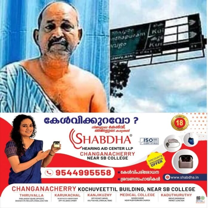കൊട്ടാരക്കരയില് എംസി റോഡില് സ്ഥാപിച്ചിട്ടുള്ള ദിശാസൂചക ഫലകമാണ് യാത്രക്കാരന്റെ ദേഹത്തേക്ക് വീണത്. തുടര്ന്ന് സ്കൂട്ടര് നിയന്ത്രണം വിട്ടു മറിഞ്ഞു.