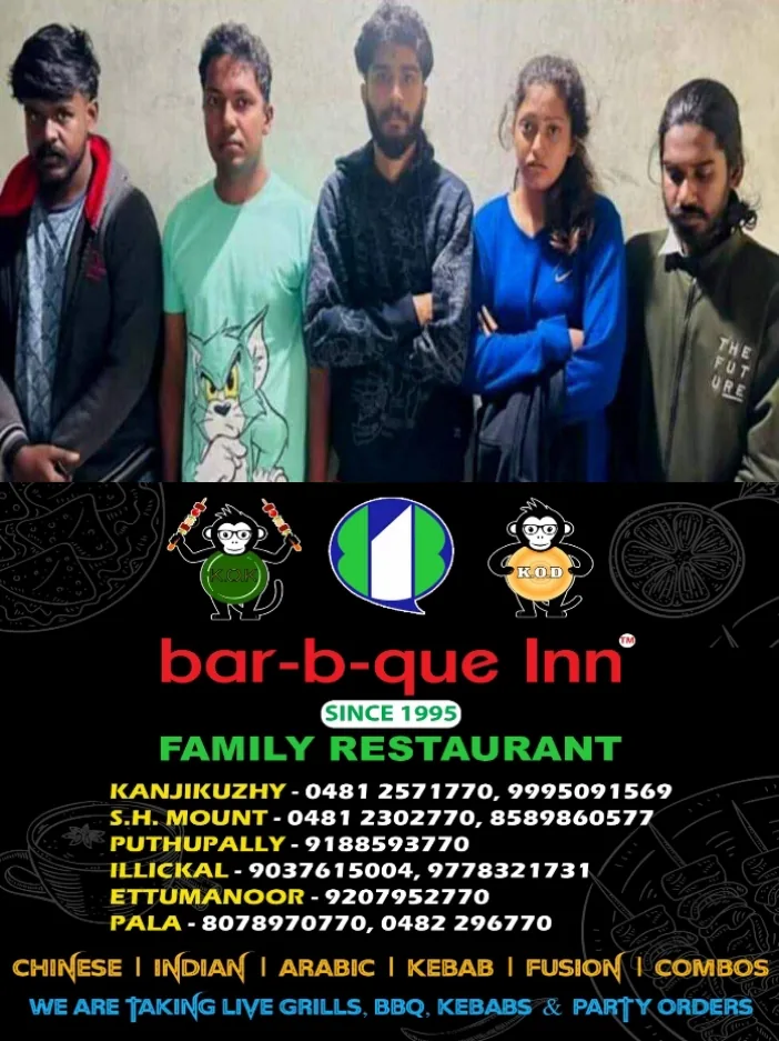 കാക്കനാട് സ്വദേശി ആരോമല്‍ (24), വൈക്കം കാപ്പന്തല സ്വദേശി എഡ്വിൻ ഡേയ്സ് (24), കാസർഗോഡ് വെള്ളരിക്കുണ്ട് സ്വദേശി ജസ്റ്റിൻ ജോസഫ് (26), വൈക്കം ബ്രഹ്‌മമംഗലം സ്വദേശി വൈഹരി (24), തൊടുപുഴ മുട്ടം സ്വദേശിനി ജെറിൻ (24) എന്നിവരാണ് അറസ്റ്റിലായത്.