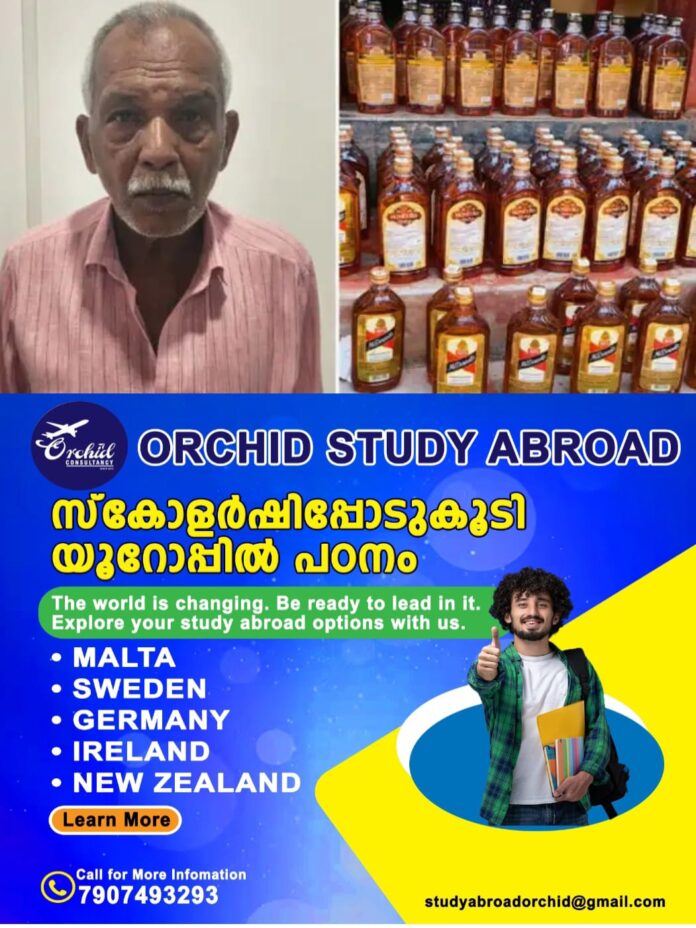 എംസി ഉണ്ട്..ഹണിബീ ഉണ്ട്.. ഏത് വേണം..! ഡ്രൈ ഡേയിൽ ആവശ്യക്കാർക്ക് അമിത വില ഈടാക്കി വിൽപ്പന; 81 ബോട്ടില്‍ വിദേശമദ്യവുമായി 75കാരൻ എക്‌സൈസിന്റെ പിടിയില്‍