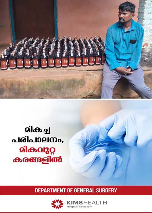 വില്പനയ്ക്കായി മദ്യം വീട്ടില് സൂക്ഷിച്ച നീരാവില് അക്ഷരമുറ്റം റസിഡന്സ് നഗറിലെ വില്സണ്(ജോണ്പോള്-44) എന്നയാളെ എക്സൈസ് അറസ്റ്റ് ചെയ്തു.