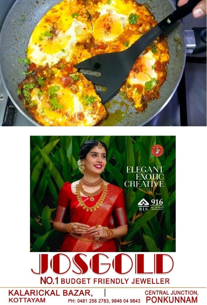ആദ്യം മുട്ട പുഴുങ്ങി മുറിക്കാതെ വെക്കുക. പാനില് എണ്ണ ചൂടാക്കി പുഴുങ്ങിയ മുട്ട അതില് ഇടുക. മറ്റൊരു മുട്ട പൊട്ടിച്ചു നന്നായി ഇളക്കി അതിലേക്ക് ഒഴിക്കുക. ഉടൻ തന്നെ ഉള്ളി, പച്ചമുളക്, മുളകുപൊടി, കുരുമുളകുപൊടി, ഉപ്പ്, മല്ലിയില എന്നിവ അതിന് മുകളിലേക്ക് ചേർക്കുക.