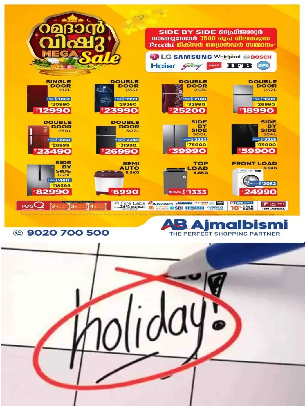 സംസ്ഥാനത്തെ നെഗോഷ്യബിള് ഇൻസ്ട്രുമെന്റ്സ് ആക്ടിന്റെ പരിധിയില് വരുന്ന എല്ലാ സർക്കാർ, അർധസർക്കാർ, വാണിജ്യ സ്ഥാപനങ്ങള്ക്കും അവധി പ്രഖ്യാപിച്ച് സർക്കാർ ഉത്തരവു പുറത്തിറക്കി. വാണിജ്യ സ്ഥാപനങ്ങള്ക്കു ശമ്പളത്തോടെയുള്ള അവധിയായിരിക്കും.
