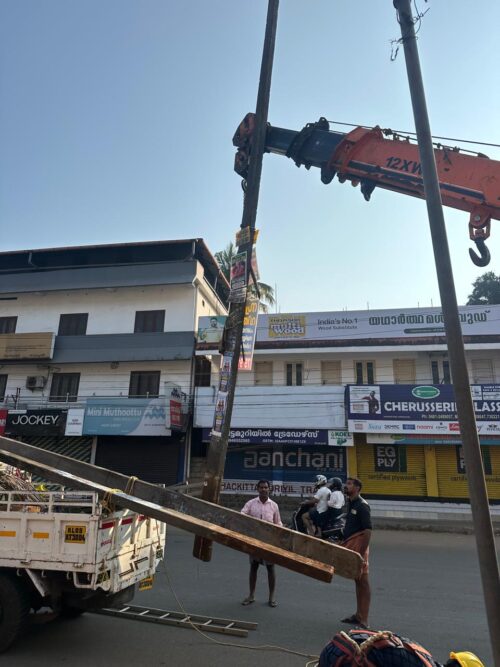 യാത്രക്കാർക്കും വാഹനങ്ങൾക്കും ബുദ്ധിമുട്ടായി നിന്നിരുന്ന പത്തോളം ഇലക്ട്രിക് പോസ്റ്റുകൾ നീക്കം ചെയ്ത് കെ എസ് ഇ ബി.