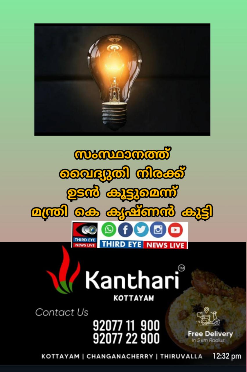 തിരുവനന്തപുരം :സംസ്ഥാനത്ത് വൈദ്യുതി നിരക്ക് ഉടൻ കൂട്ടേണ്ടി വരുമെന്ന് മന്ത്രി കെ കൃഷ്ണൻകുട്ടി. വലിയ വർധന നിരക്കിലുണ്ടാകില്ല. പീക്ക് അവേഴ്സിലാകണം നിരക്ക് വർധനയെന്നാണ് സർക്കാർ താൽപര്യമെന്നും വൈദ്യുതി മന്ത്രി പറഞ്ഞു . സംസ്ഥാനത്ത് വൈദ്യുതി നിരക്ക് വർധിപ്പിക്കണമെന്ന് ബോർഡ് റെഗുലേറ്ററി കമ്മിഷനോട് ആവശ്യപ്പെട്ടിട്ടുണ്ടെന്നും മന്ത്രി കെ. കൃഷ്ണൻകുട്ടി പറഞ്ഞു.