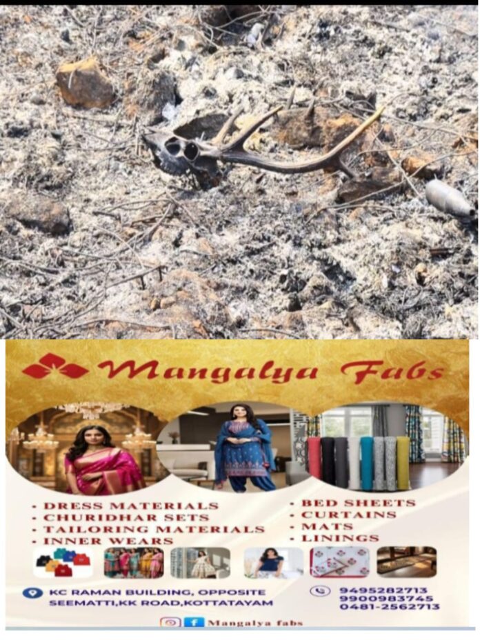 ഈരാറ്റുപേട്ടയിൽ തരിശുനിലത്ത് പിടിച്ച തീ അണയ്ക്കുന്നതിനിടെയാണ് മാനിന്റെ തലയോട്ടിയും കൊമ്പും കണ്ടെത്തിയത്.