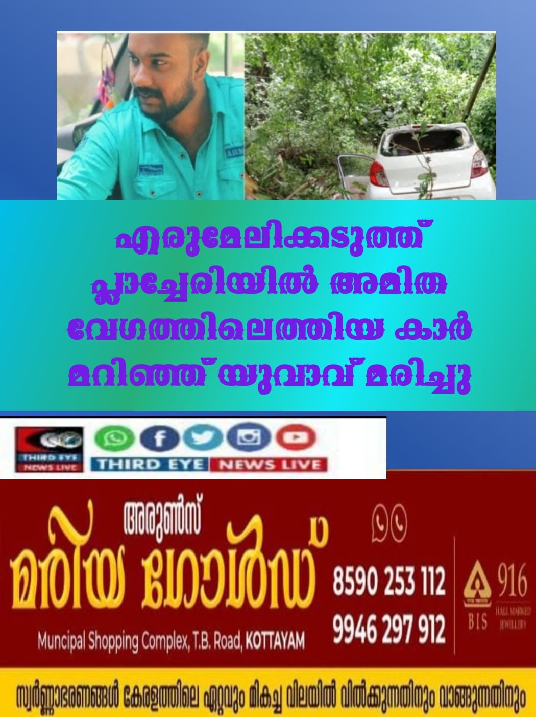 എരുമേലി: പ്ലാച്ചേരിയിൽ അമിത വേഗത്തിലെത്തിയ കാർ താഴ്ചയിലേക്ക് മറിഞ്ഞ് യുവാവ് മരിച്ചു. റാന്നി മക്കപ്പുഴ സ്വദേശി പ്ലാമൂട്ടിൽ സഞ്ജു തോമസ് (22) ആണ് മരിച്ചത്.