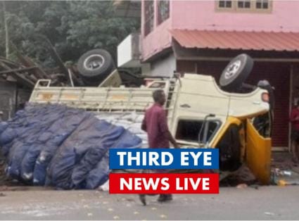 എരുമേലി കരിങ്കല്ലുമുഴിയിൽ നിയന്ത്രണം വിട്ട ലോറി തലകീഴായി മറിഞ്ഞ് അപകടം; ഡ്രൈവർ ഉൾപ്പെടെ മൂന്നുപേർക്ക് പരിക്കേറ്റു