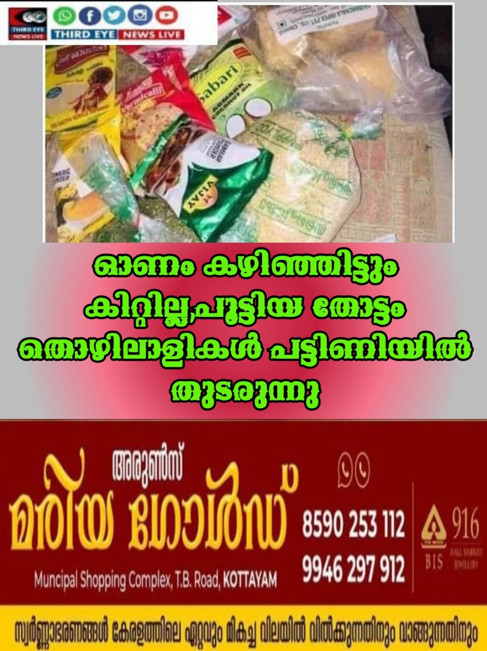 ഇടുക്കി : തിരുവോണം കഴിഞ്ഞ് ദിവസങ്ങളായിട്ടും പൂട്ടിയ തോട്ടങ്ങളിലെ തൊഴിലാളികൾക്ക് സർക്കാർ അനുവദിച്ച പ്രത്യേക ഓണക്കിറ്റ് കിട്ടിയിട്ടില്ല. പട്ടിണയിൽ കഴിയുന്നത് 1488 കുടുംബങ്ങൾ. ഫണ്ട് അനുവദിക്കുന്നതിലെ തടസ്സമാണ് കിറ്റ് വിതരണം മുടങ്ങാൻ കാരണമെന്ന് അധികൃതർ.