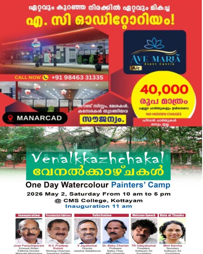 രാവിലെ 10 മുതൽ സിഎം.എസ് കോളേജ് കാമ്പസിൽ ഏക ദിന വാട്ടർകളർ പെയിന്റേഴ്സ്