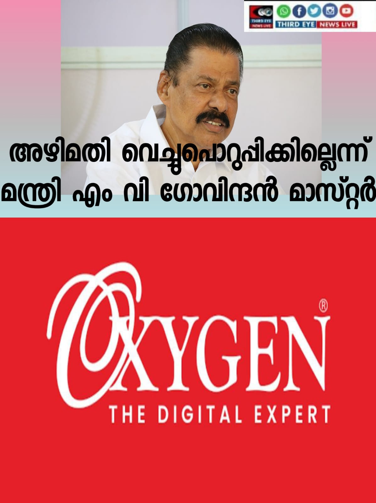 തിരുവനന്തപുരം: മദ്യ കച്ചവടവുമായി ബന്ധപ്പെട്ട പാലക്കാട് എക്സൈസ് ഡിവിഷന്‍ ഓഫീസിലും മറ്റ് ചില ഓഫീസുകളിലും വന്‍ അഴിമതി നടത്താന്‍ കൂട്ടുനിന്ന ഉദ്യോഗസ്ഥരെ അടിയന്തരമായി സസ്പെന്‍ഡ് ചെയ്യാന്‍ നിര്‍ദേശം നല്‍കിയതായി തദ്ദേശ സ്വയംഭരണ, എക്സൈസ് വകുപ്പ് മന്ത്രി എം വി ഗോവിന്ദന്‍ മാസ്റ്റര്‍ പ്രസ്താവനയില്‍ പറഞ്ഞു. മദ്യകച്ചവടവുമായി ബന്ധപ്പെട്ട് ഒരുതരത്തിലുമുള്ള അഴിമതിയും വെച്ചുപൊറുപ്പില്ലെന്നും അഴിമതിക്കാരെ തുടച്ചുനീക്കുമെന്നും മന്ത്രി വ്യക്തമാക്കി.