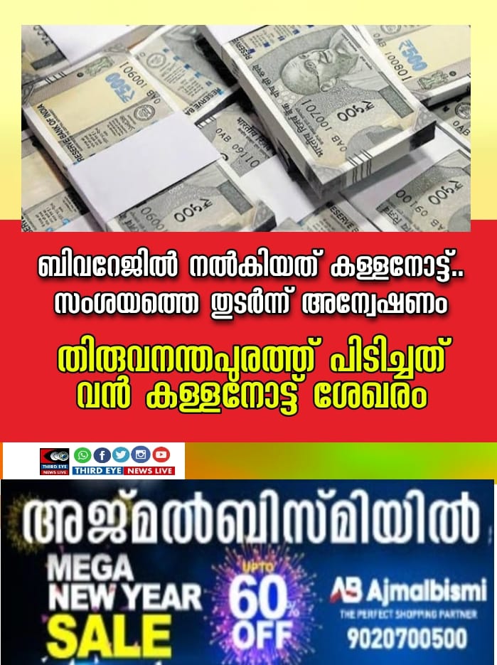 തിരുവനന്തപുരത്ത് കള്ളനോട്ട് ശേഖരം; ബിവറേജിൽ നൽകിയത് കള്ളനോട്ട്; 4 പേർ അറസ്റ്റിൽ