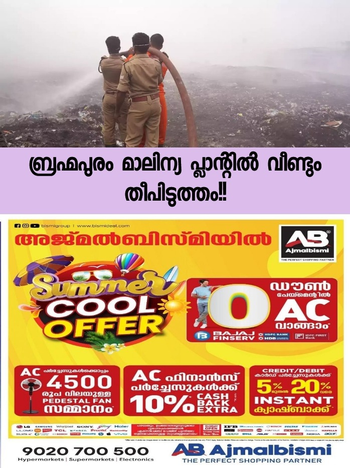 കൊച്ചി: ബ്രഹ്മപുരം മാലിന്യ സംസ്കരണ പ്ലാന്റിൽ വീണ്ടും തീപിടിത്തം. കഴിഞ്ഞതവണയുണ്ടായ തീപിടിത്തത്തിൽ ഏറ്റവും അവസാനം തീയണച്ച സെക്ടർ ഏഴിലെ മാലിന്യക്കൂമ്പാരത്തിനാണ് തീപിടിച്ചത്. ബ്രഹ്മപുരത്ത് തുടർന്നിരുന്ന അഗ്നിരക്ഷാസേനയുടെ യൂണിറ്റുകൾക്കു പുറമേ ഒരു യൂണിറ്റ് കൂടി സ്ഥലത്തെത്തി തീയണയ്ക്കാൻ ശ്രമിക്കുകയാണ്. അഗ്നിശമന സേനയുടെ കൂടുതൽ യൂണിറ്റുകൾ സ്ഥലത്തേക്ക് എത്തുന്നു. പ്രദേശത്ത് വ്യാപകമായി പുക നിറഞ്ഞിട്ടുണ്ട്. തീപിടിത്തത്തിന്റെ കാരണം വ്യക്തമല്ല.