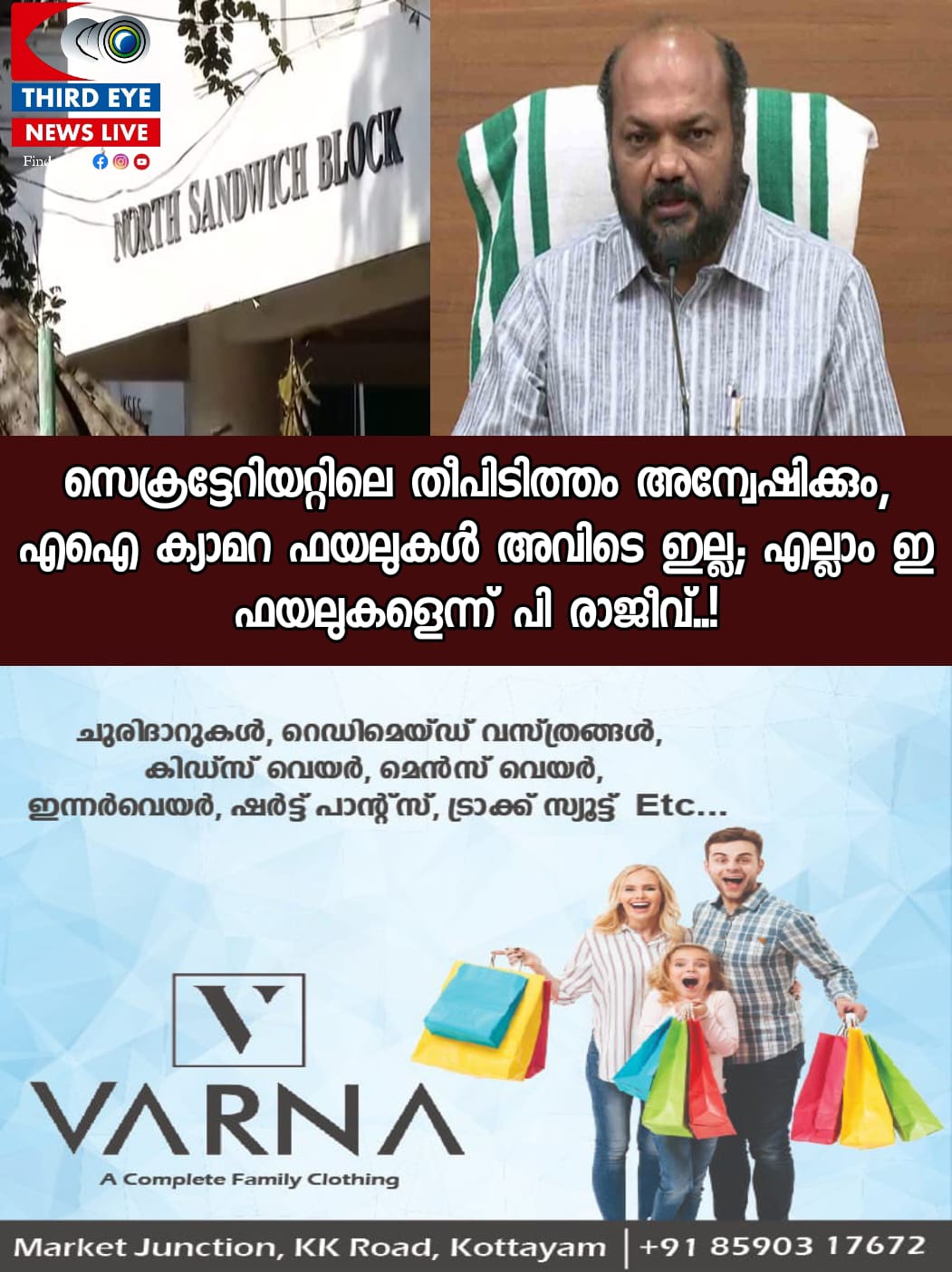 സെക്രട്ടേറിയറ്റില് ഉണ്ടായ തീപിടിത്തം ബന്ധപ്പെട്ട ഏജന്സികള് അന്വേഷിച്ചാലേ വ്യക്തമാകുകയുള്ളൂ എന്ന് പി രാജീവ് പറഞ്ഞു. ‘എഐ ക്യാമറയുമായി ബന്ധപ്പെട്ട ഫയലുകള് അവിടെ വരില്ല. ഭരണവകുപ്പ് ഞങ്ങള് അല്ലല്ലോ. വ്യവസായവകുപ്പില് വരുന്ന ഫയലുകള് എല്ലാം ഇ ഫയലുകള് ആണ്. ഈ ഫയലുകള് സംവിധാനത്തില് ഉണ്ടാവും. ഭരണവകുപ്പുമായി ബന്ധപ്പെട്ട കാര്യങ്ങള് ക്യാബിനറ്റ് കുറിപ്പ് ആയി വരുമ്പോള് മാത്രമേ ഞങ്ങള് അറിയുകയുള്ളൂ’- പി രാജീവ് പറഞ്ഞു.