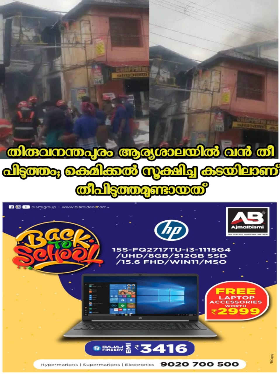 നാല് കടകളുള്ള കെട്ടിടത്തിലെ മുകളിലുള്ള നിലകളിലാണ് തീപടർന്നത്. സമീപത്തെ കടകളിലേക്കും തീപടർന്നു. ശിവകുമാർ ഏജൻസീസ് എന്ന സ്ഥാപനത്തിലാണ് തീപിടിച്ചത്.