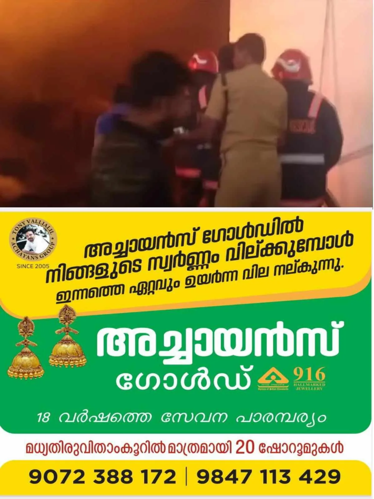 ലക്ഷക്കണക്കിന് സാമ്പത്തിക നഷ്ടമാണ് ഉടമയ്ക്ക് ഉണ്ടായിട്ടുള്ളത്. തീ പിടിത്തത്തിന് പിന്നിലെ കാരണം വ്യക്തമല്ല. ഷോര്‍ട്ട് സര്‍ക്യൂട്ട് ആകാം കാരണമെന്നാണ് വിലയിരുത്തല്‍.