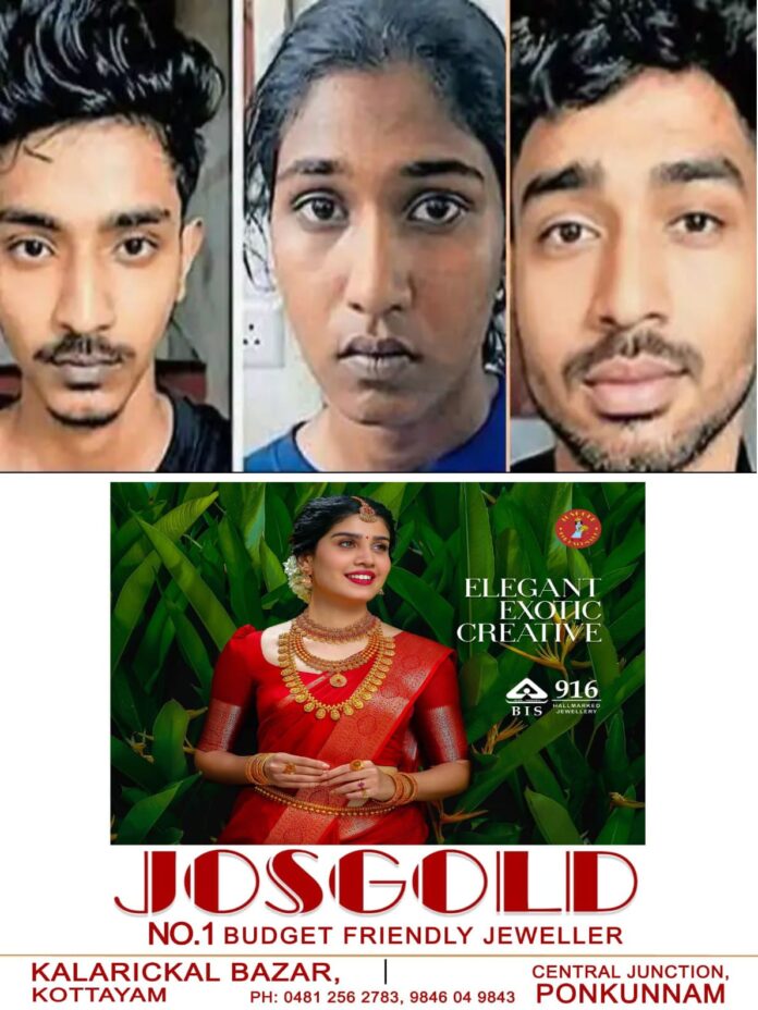അമ്പലപ്പുഴ കോമന മുല്ലക്കേരില് വീട്ടില് എം ദേവിക(22), തലശേരി ന്യൂമാഹി കുറിച്ചിയില് വരശ്രീ വീട്ടില് നിവേദ് ഷൈനിത്ത് (22), ന്യൂമാഹി ടെമ്പിള് ഗേറ്റ് പൂവളപ്പ് സ്ട്രീറ്റ് പുതുശേരി വീട്ടില് ദേവാ സതീഷ് (21) എന്നിവരെയാണ് ഹില്പാലസ് പോലീസ് അറസ്റ്റ് ചെയ്തത്.