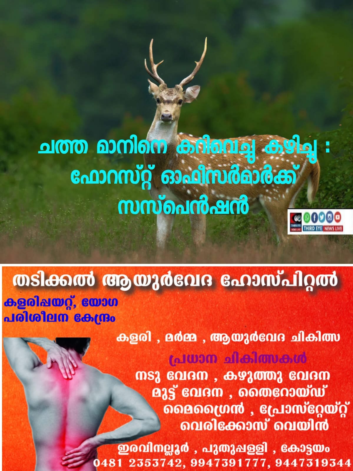 ചത്ത മാനിനെ കറിവെച്ച് കഴിച്ചു; രണ്ട് ഫോറസ്റ്റ് ഓഫിസർമാർക്ക് സസ്പെൻഷൻ