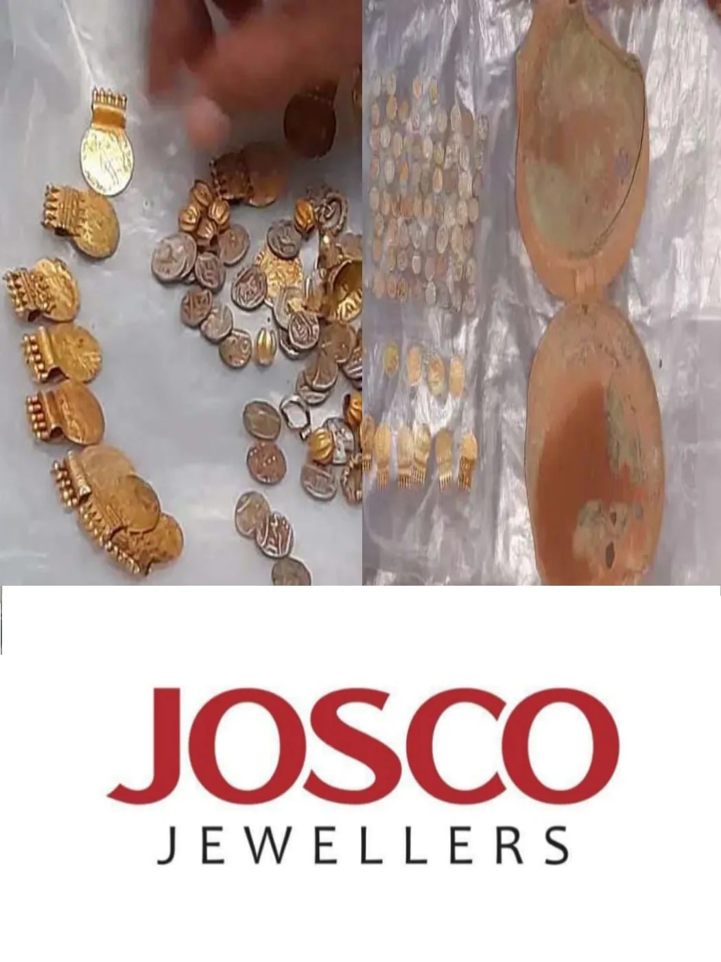 ഒരു മീറ്റർ ആഴത്തില് കുഴിയെടുത്തപ്പോഴാണ് ഇവ ശ്രദ്ധയില്പ്പെട്ടത്. പതിനേഴ് മുത്തുമണി, പതിമൂന്ന് സ്വർണ ലോക്കറ്റുകള്, കാശുമാലയുടെ ഭാഗമെന്ന് കരുതുന്ന നാല് പതക്കങ്ങള്, പഴയകാലത്തെ അഞ്ചു മോതിരങ്ങള് , ഒരു സെറ്റ് കമ്മല്, നിരവധി വെള്ളി നാണയങ്ങള്, ഭണ്ഡാരം എന്ന് തോന്നിക്കുന്ന ഒരു സാധനം എന്നിവയാണ് ലഭിച്ചത്. ചിതറക്കിടക്കുന്ന നിലയിലായിരുന്നു ആഭരണങ്ങളും നാണയങ്ങളും.