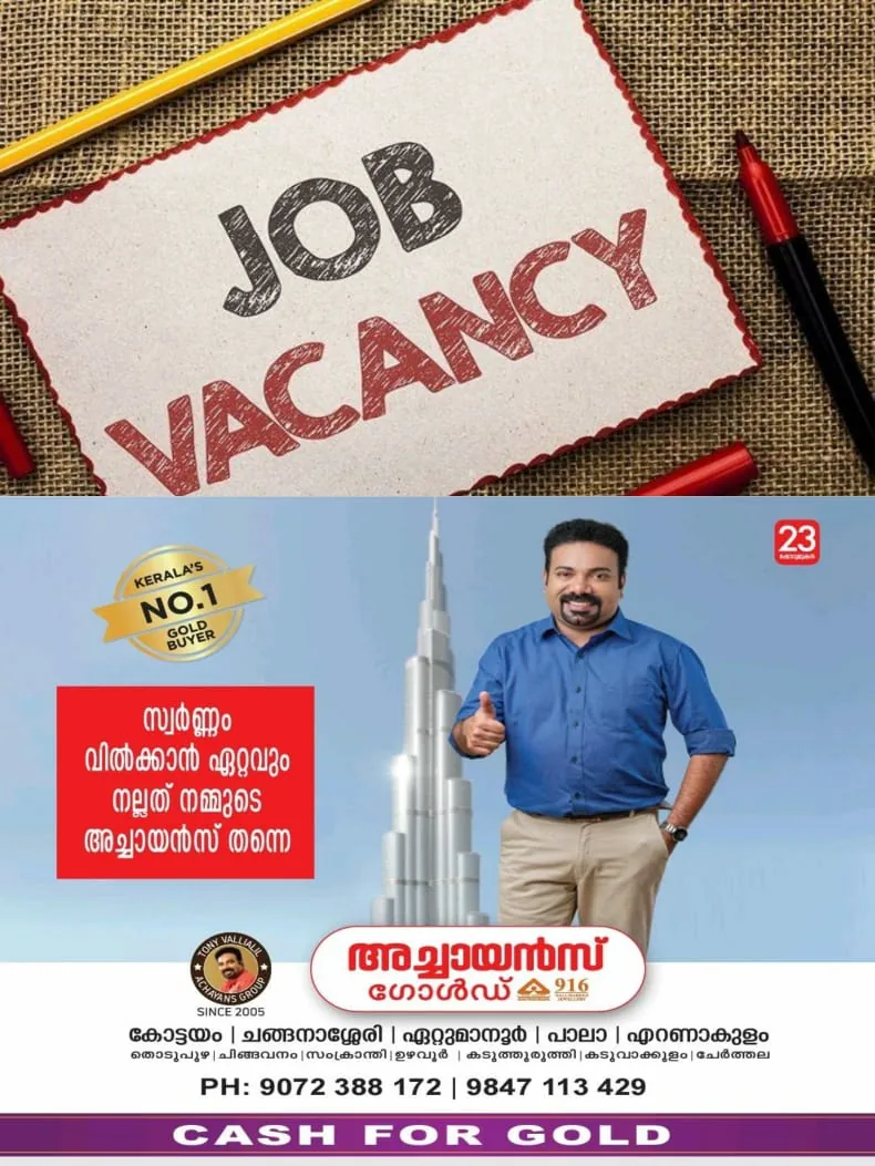 താല്‍പര്യമുള്ളവര്‍ അന്നേദിവസം യോഗ്യത തെളിയിക്കുന്ന രേഖകളുടെ അസല്‍, പകര്‍പ്പ്, ബയോഡാറ്റ എന്നിവ സഹിതം സൂപ്രണ്ടിന്റെ ഓഫീസില്‍ ഹാജരാകണം. സംശയ നിവാരണത്തിന്: 0484 2386000 എന്ന നമ്പറില്‍ ബന്ധപ്പെടുക.