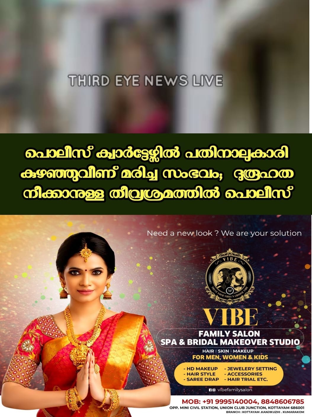 തിരുവനന്തപുരം: പൊലീസ് ക്വാർട്ടേഴ്സിൽ പതിനാലുകാരി കുഴഞ്ഞുവീണ് മരിച്ച സംഭവത്തിലെ ദുരൂഹത നീക്കാനുള്ള തീവ്രശ്രമത്തിൽ പൊലീസ്. ആന്തരിക അവയവങ്ങളുടെ പരിശോധന റിപ്പോർട്ട് അടിയന്തരമായി ലഭ്യമാക്കണമെന്നാവശ്യപ്പെട്ട് ഫോറൻസിക് ലാബിന് പൊലീസ് കത്ത് നൽകി. മരണ കാരണം വ്യക്തമാക്കാനാണ് നടപടി. അതേസമയം, പെൺകുട്ടി പഠിച്ച സ്കൂളിനെതിരെ നടക്കുന്നത് തെറ്റായ പ്രചാരണമാണെന്ന് സ്കൂൾ അധികൃതർ പറയുന്നു.