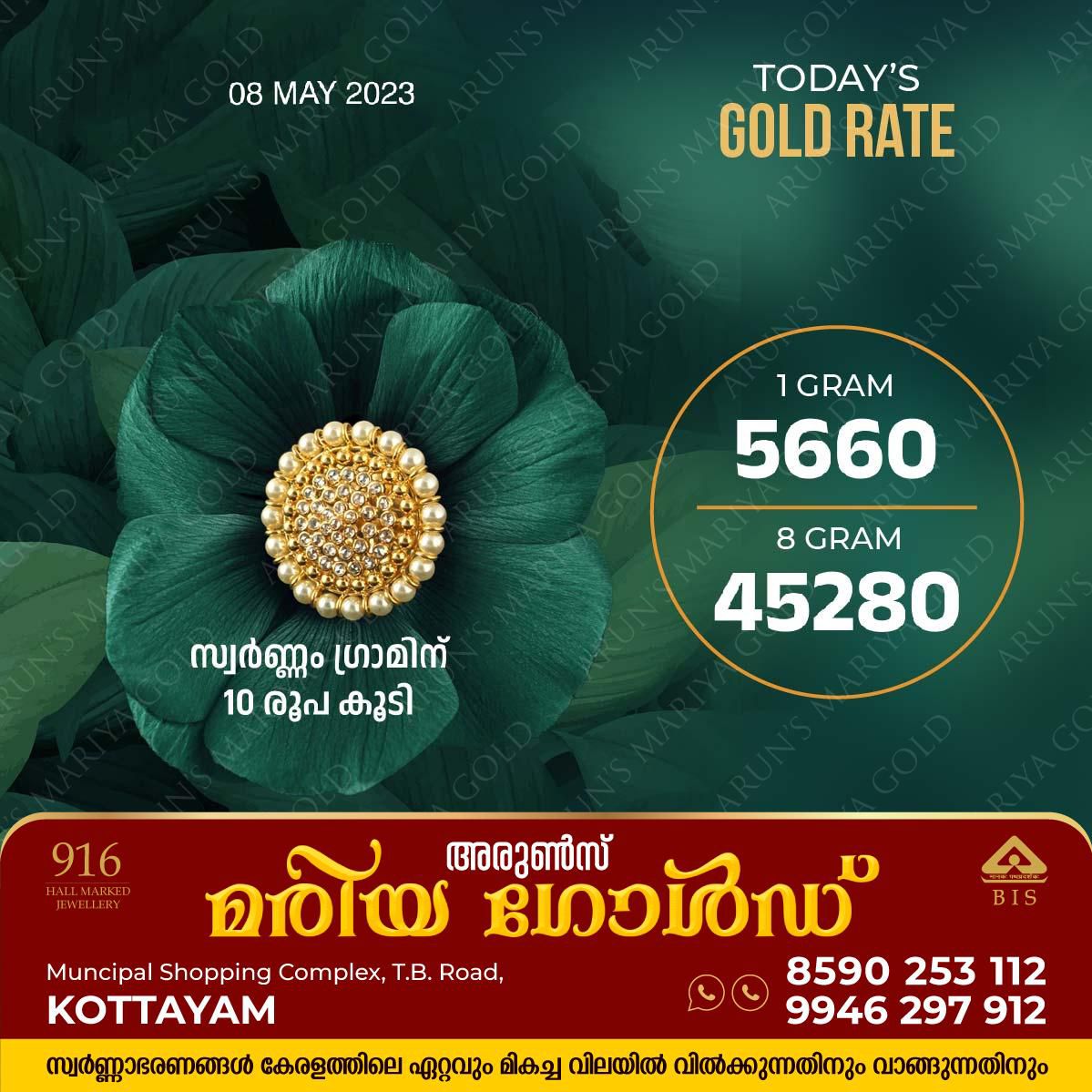 കോട്ടയം അരുൺസ് മരിയ ഗോൾഡിന്റെ ഇന്നത്തെ സ്വർണ നിരക്ക്