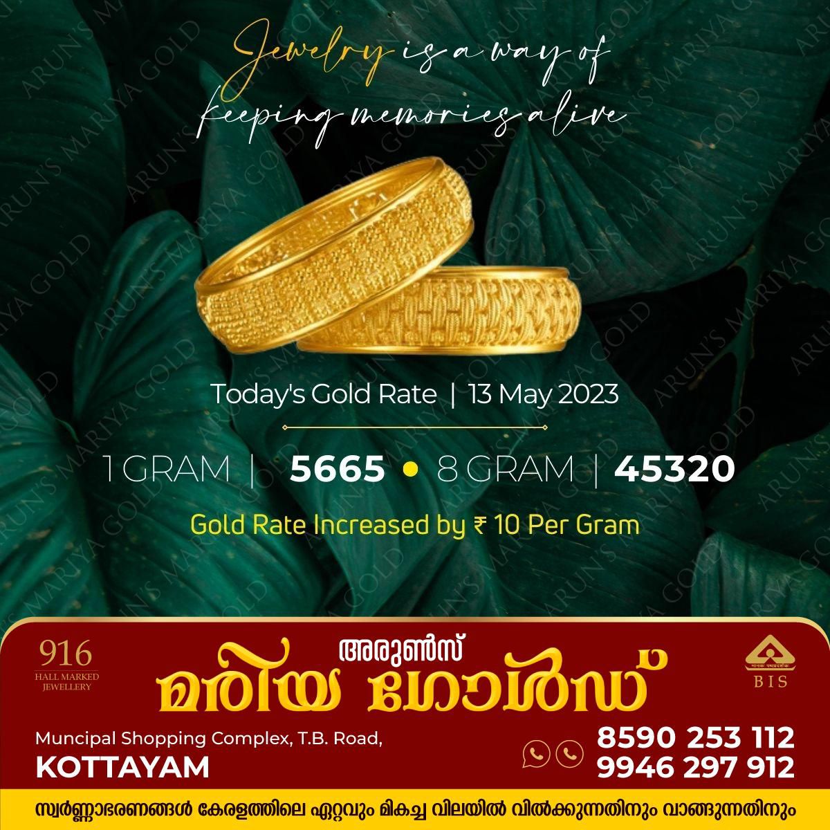 കോട്ടയം അരുൺസ് മരിയ ഗോൾഡിന്റെ ഇന്നത്തെ സ്വർണ നിരക്ക്