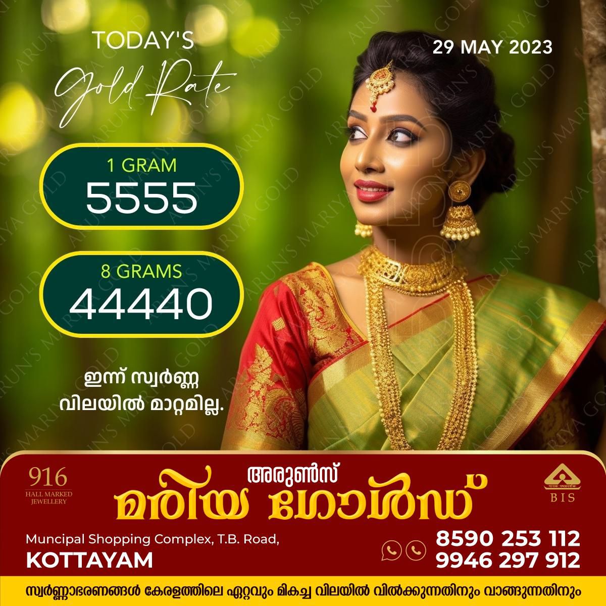 കോട്ടയം അരുൺസ് മരിയ ഗോൾഡിന്റെ ഇന്നത്തെ സ്വർണ നിരക്ക്