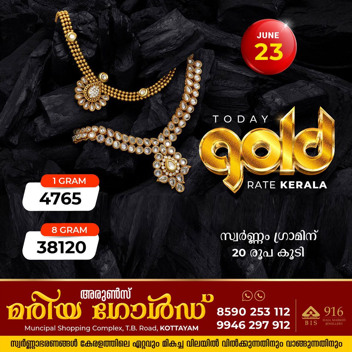 ഇന്നലെ 160 രൂപയുടെ ഇടിവുണ്ടായിരുന്നു. വിപണിയിൽ ഇന്ന് ഒരു പവൻ സ്വർണത്തിന്റെ വില ഇന്ന് 38120 രൂപയാണ്.