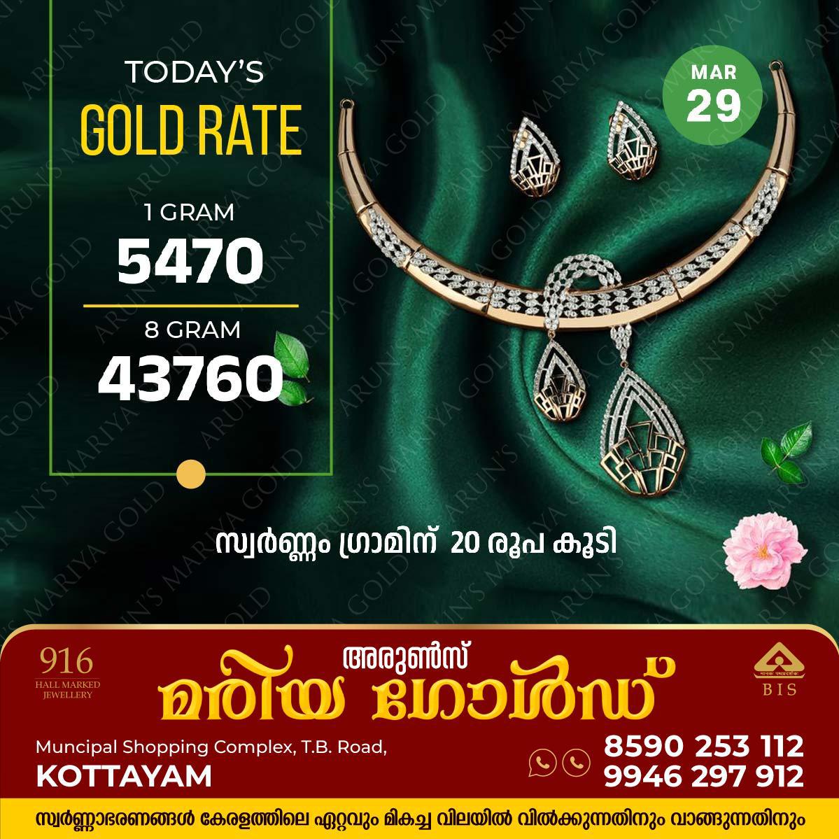 കോട്ടയം അരുൺസ് മരിയ ഗോൾഡിന്റെ ഇന്നത്തെ സ്വർണ നിരക്ക്