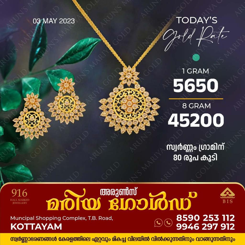 കോട്ടയം അരുൺസ് മരിയ ഗോൾഡിന്റെ ഇന്നത്തെ സ്വർണ നിരക്ക്