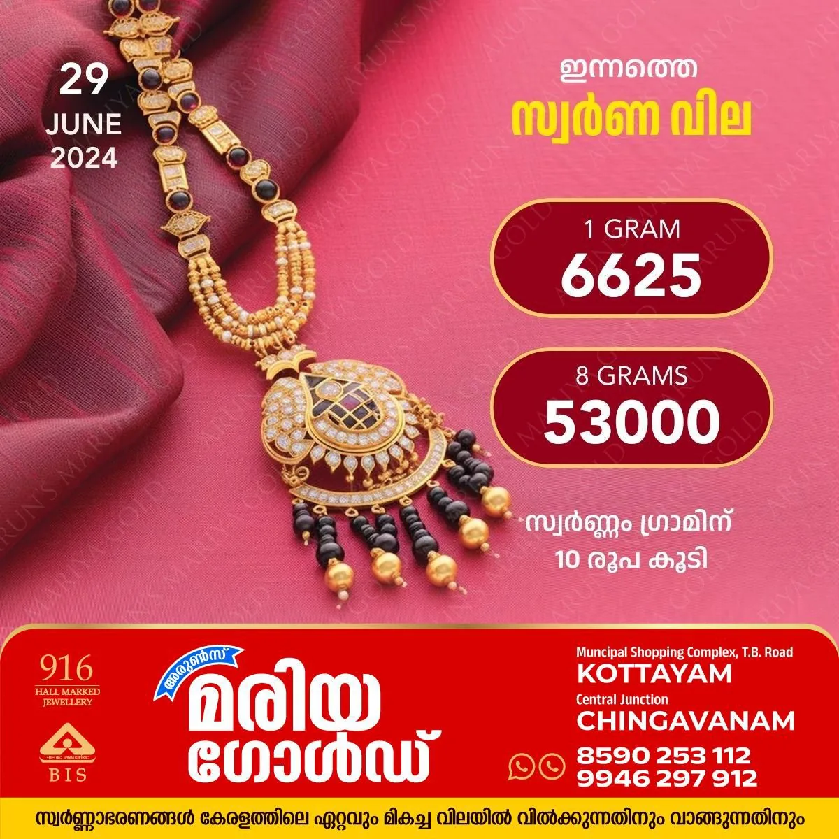 സ്വർണ വിലയിൽ ഇന്ന് നേരിയ വർധന ; അറിയാം കോട്ടയം അരുൺസ് മരിയാ ഗോൾഡിലെ സ്വർണ്ണ വില