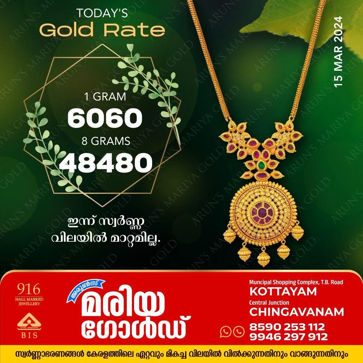 അരുൺസ് മരിയഗോൾഡ് സ്വർണ്ണ വില അറിയാം