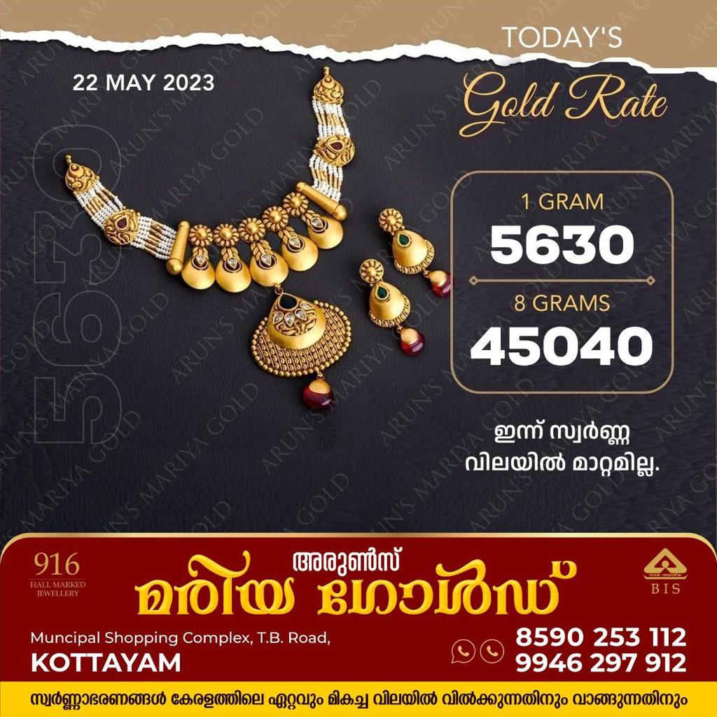 കോട്ടയത്തെ ഇന്നത്തെ സ്വർണവില അരുൺസ് മരിയ ഗോൾഡ്