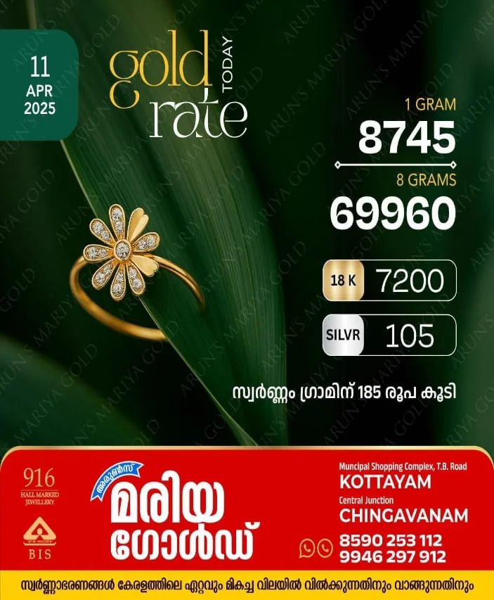 കോട്ടയം അരുൺസ് മരിയ ഗോൾഡിലെ ഇന്നത്തെ സ്വർണവില അറിയാം