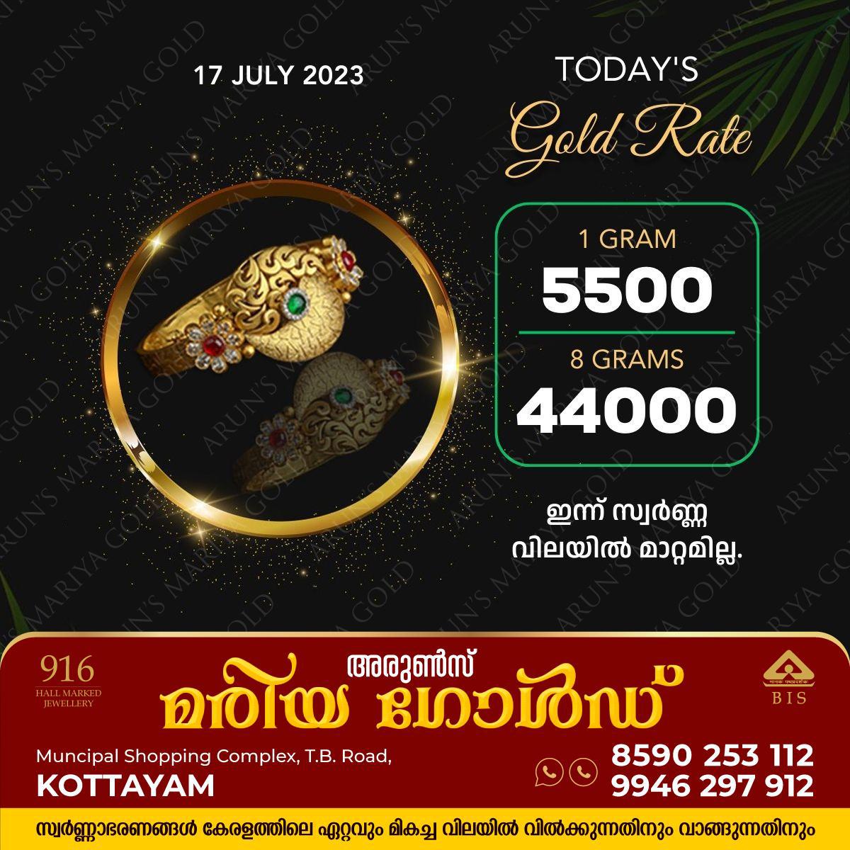 കോട്ടയത്തെ ഇന്നത്തെ സ്വർണവില അരുൺസ് മരിയ ​ഗോൾഡ്